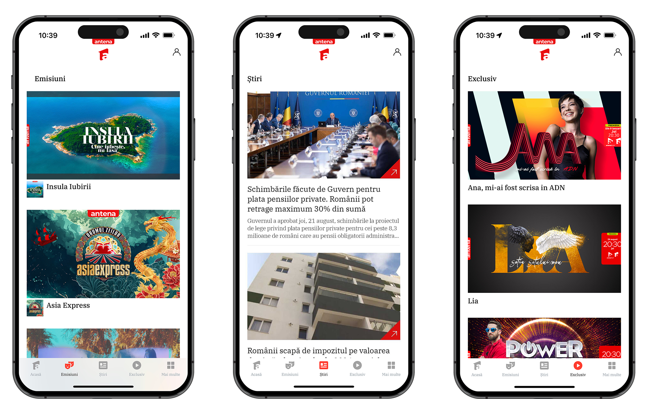 Ai ultimele știri despre show-urile și vedetele Antena 1. Vezi video cu cele mai tari momente din fiecare emisiune, interviuri exclusive cu vedetele tale favorite. Toate show-urile exclusiv online le ai direct în aplicație. Vezi doar conținut relevant, după interesele și preferințele tale. Te anunțăm prin notificări atunci când avem ceva ce te-ar putea interesa.